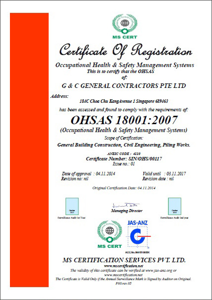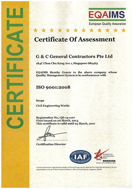 The company has achieved the certification of ISO 9001:2000 on 3 June 2003, OHSAS 18001:2007 on 5 May 2010, ISO 1401:2004 on 28 Mar 2011 and BizSAFE Enterprise Level Start on 22 Dec 2011.